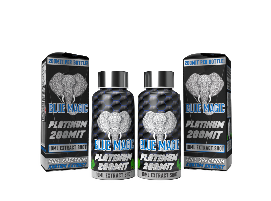 Blue Magic's all new Kratom Extract shots are here! These newly formulated shots are now stronger and better tasting than ever. Our gold shots are 110mg of Mitragynine and our Platinum shot is 200mg of Mitragynine.